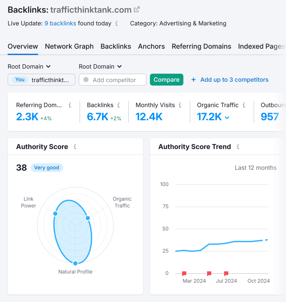 Tip: You can check your existing backlinks with Semrush’s Backlink Analytics tool.