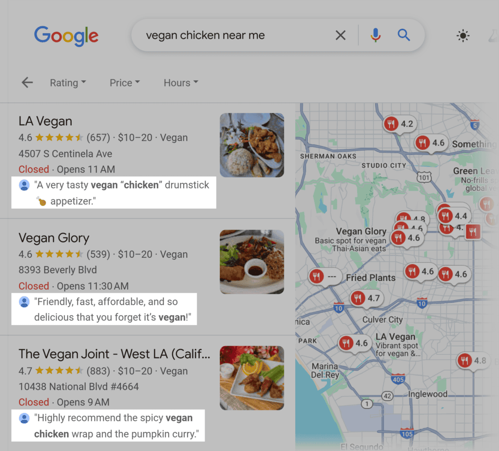 Plus, Google can use the contents of customer reviews to match your profile with relevant search queries.