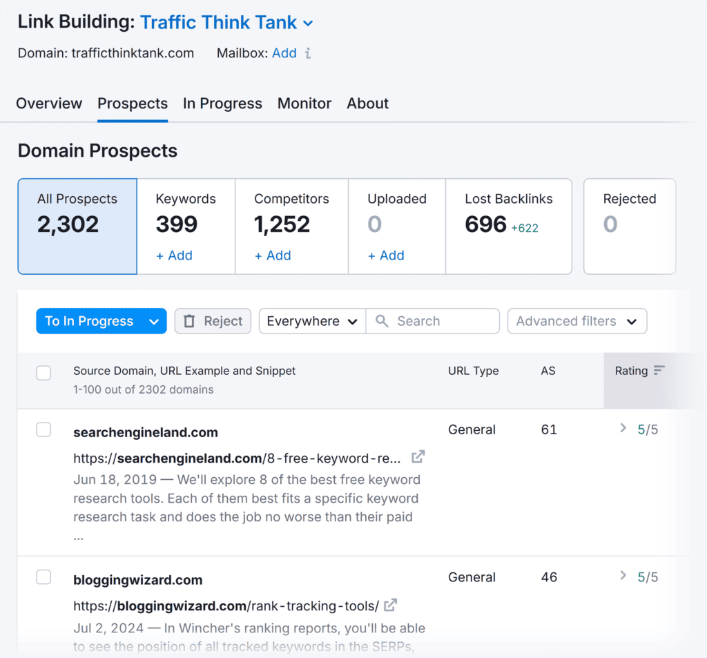 While you can do this manually, using link-building tools makes the process more efficient. For example, Semrush’s Link Building Tool can help automate and streamline your outreach.