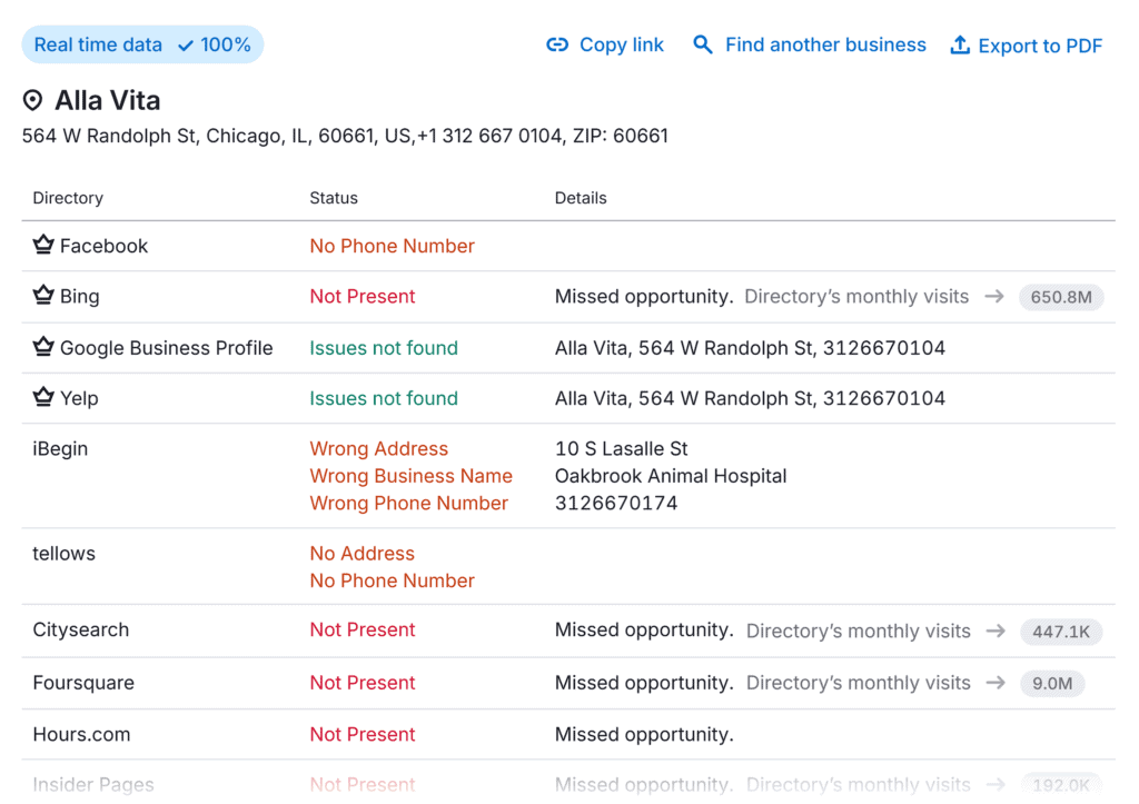 To keep track of your business listings and ensure your information is consistent everywhere, tools like Semrush’s Listing Management let you check your current citations across multiple directories from one dashboard.