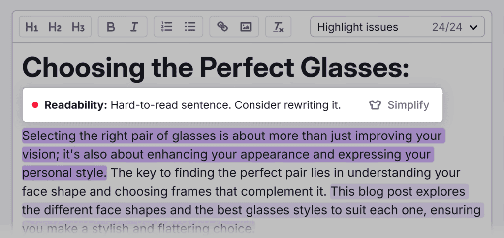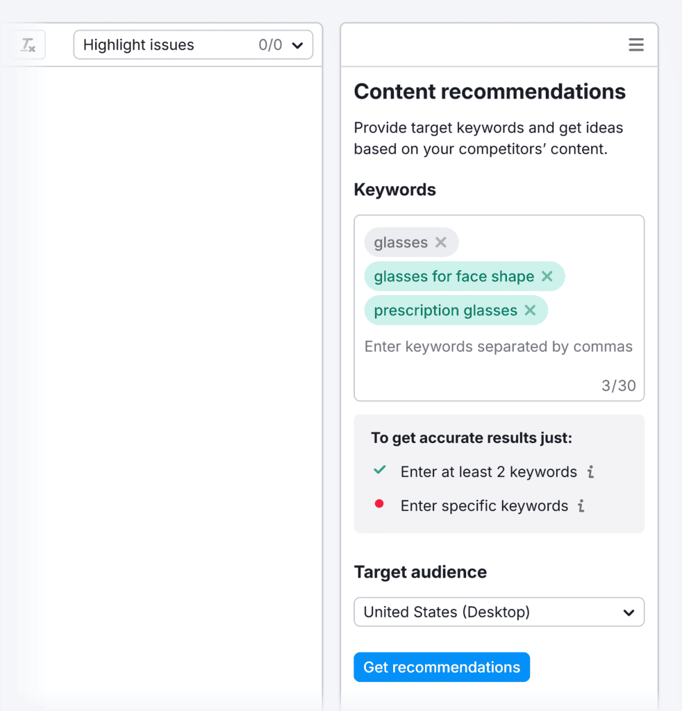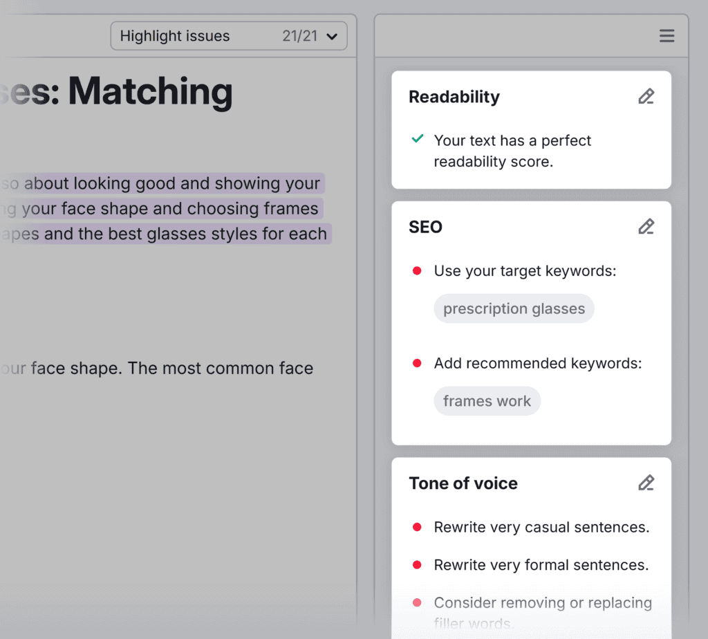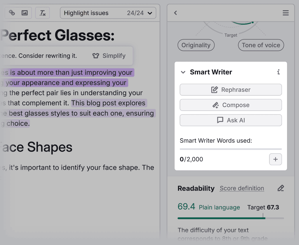 AI-powered tools like Semrush’s SEO Writing Assistant can help you write and optimize content.