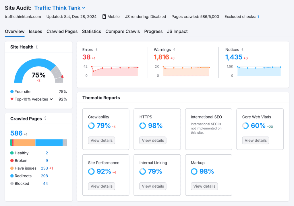 - Site Audit: Check for technical issues across your website