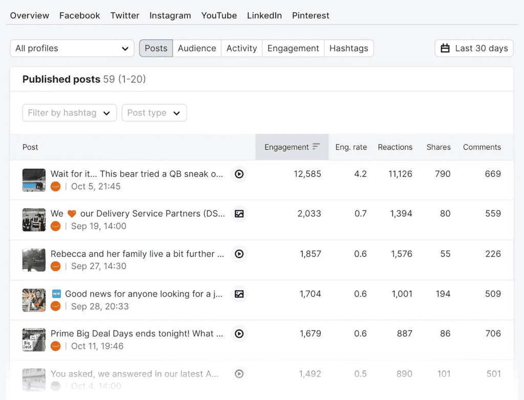 Managing multiple social media accounts can be time-consuming, but tools can help streamline the process. For example, Semrush Social lets you schedule posts across multiple platforms, analyze your results, create content using AI, and much more.