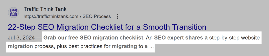 This description can appear in the SERP. Like so: