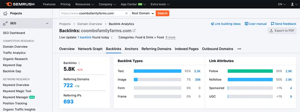 During this step, you’ll see what types of links are influential within your industry, identify potential link-building opportunities, and evaluate where your link profile may be falling short.