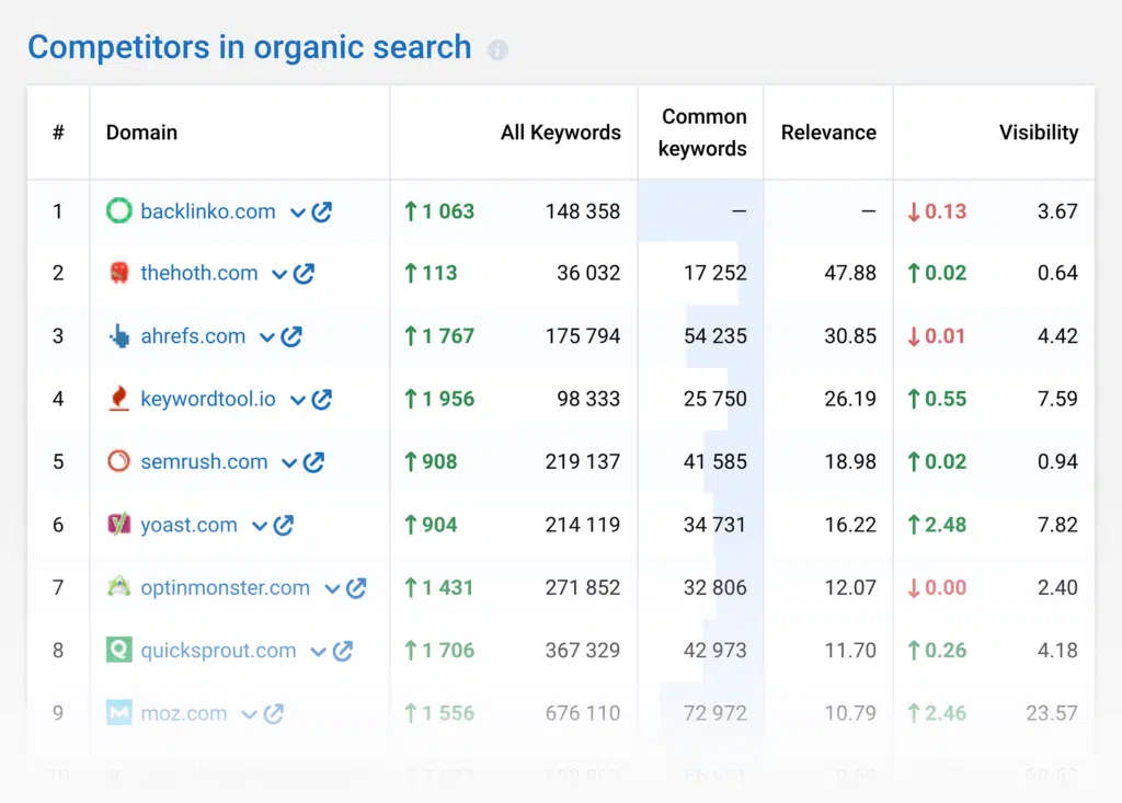 - Top keywords and backlinks Get a breakdown of your competitors’ organic and paid keywords, plus a detailed look at referring domains and which content earns the most backlinks