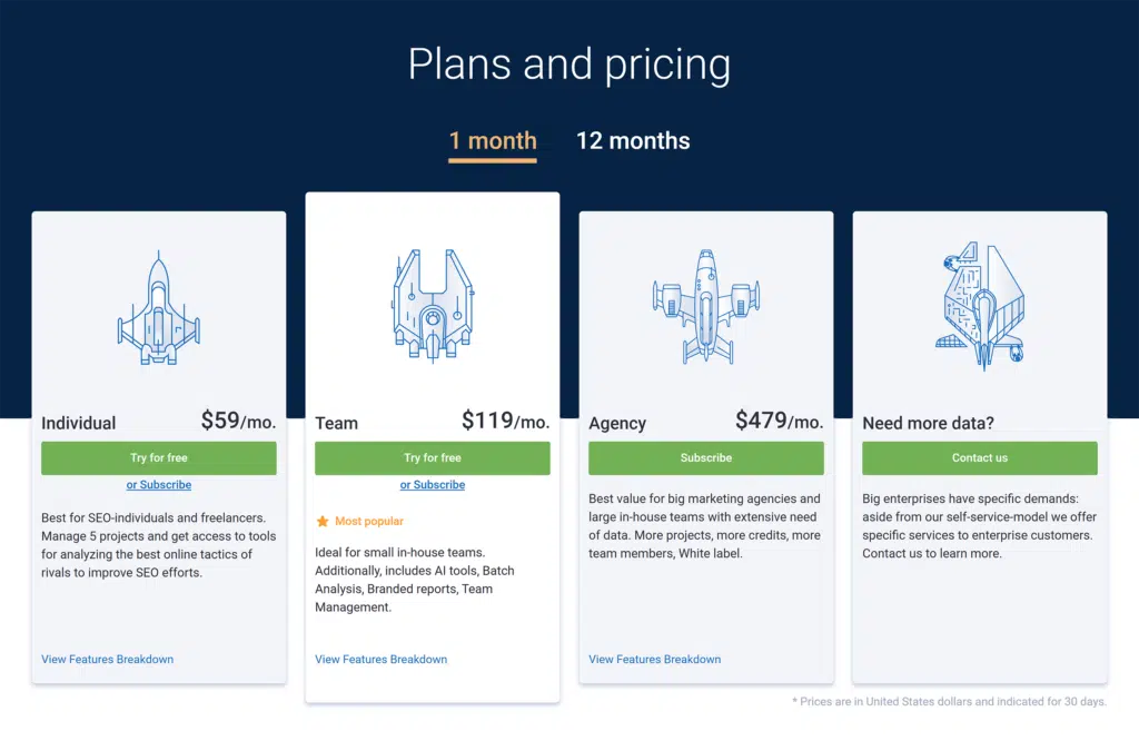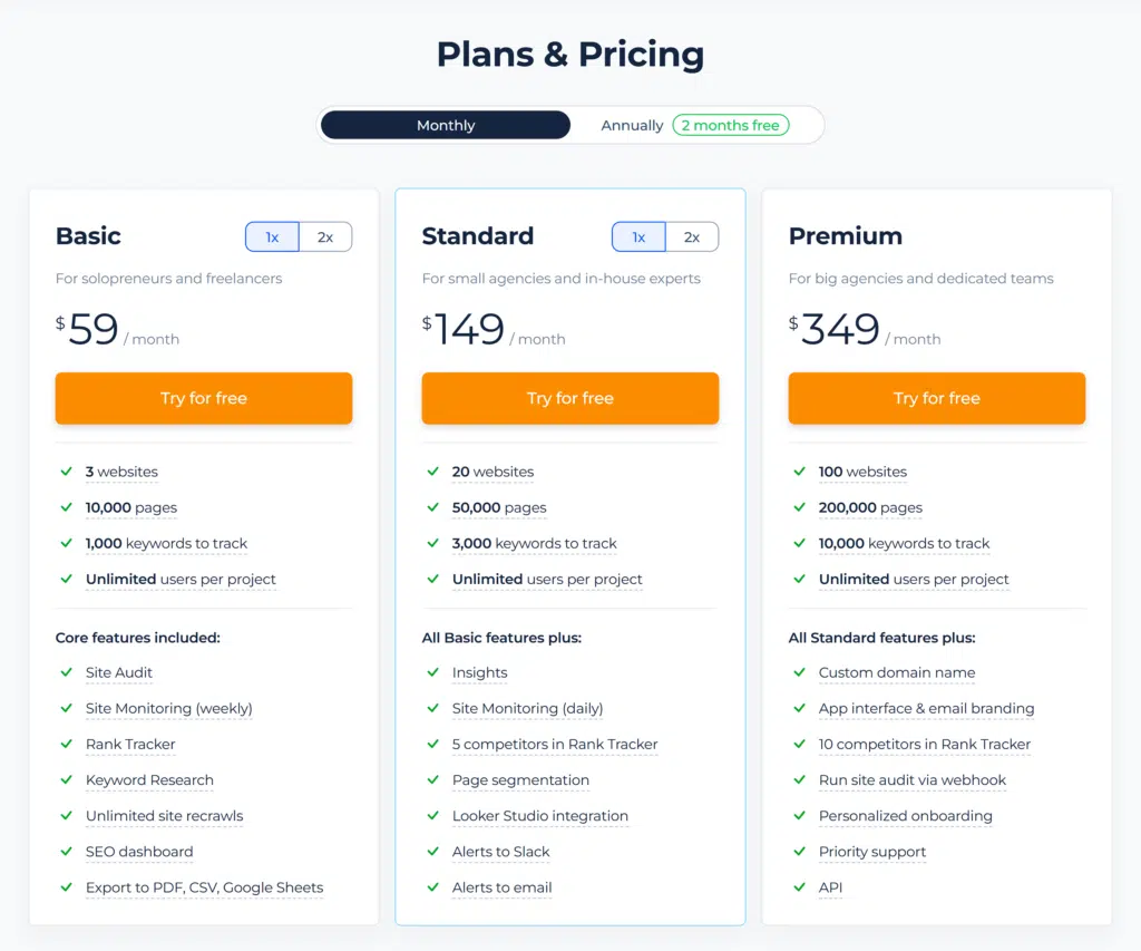 Serpstat’s budget price (if you stick with the basic subscription) and tool variety make this platform a great deal.