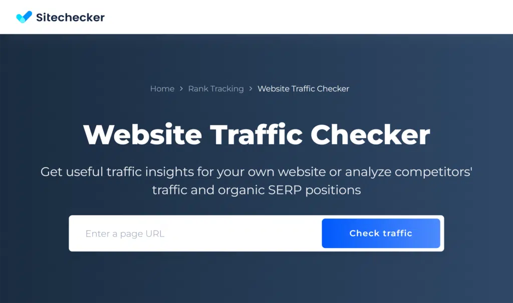 Sitechecker is a paid SEO platform known for its easy-to-use tools, including a website traffic checker, rank tracker, and other products.