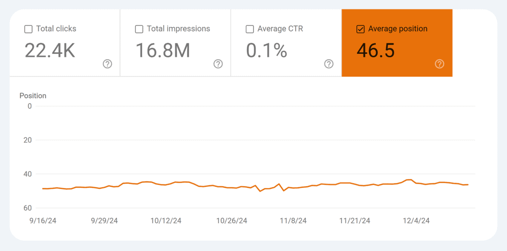 This will show you a chart of your website’s average position for all of your search queries over time.