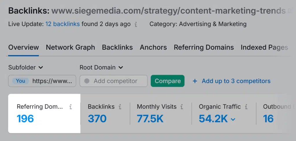 Results: The content marketing trends report attracted links from 190+ domains.