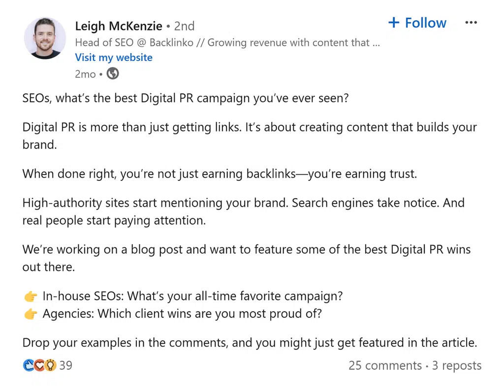 Unlike traditional link-building, digital PR is more comprehensive. It aims for more than just one-off backlinks.