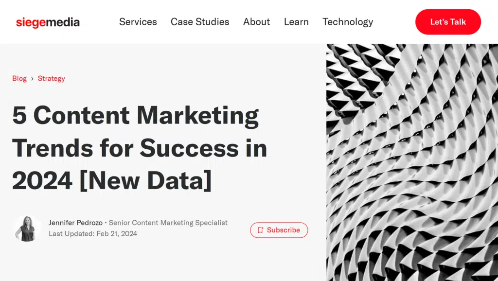 What they did: Siege Media partnered with Wynter, a B2B market insights company, to create a detailed report analyzing trends in content marketing. They surveyed 293 content marketers about their plans for content strategy, AI, and budgets in 2024 to understand the future direction of content marketing.