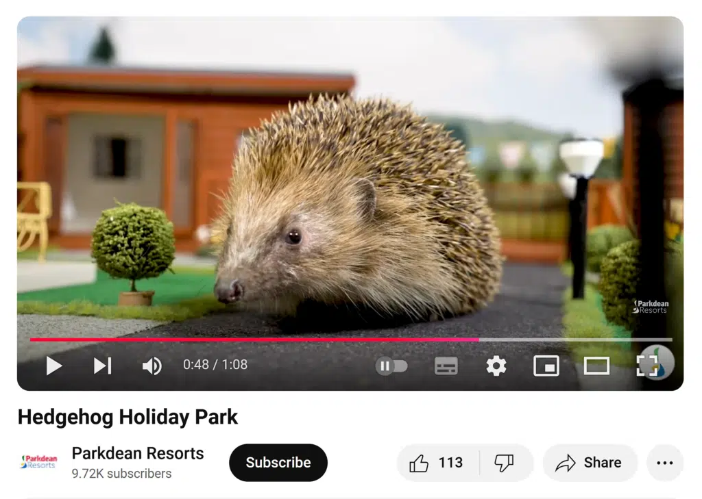 What they did: Parkdean tapped into the UK’s buzz around hedgehog conservation by creating a “holiday park” for hedgehogs. The campaign replicated their real lodges in tiny versions to provide a safe place for hedgehogs to hibernate.