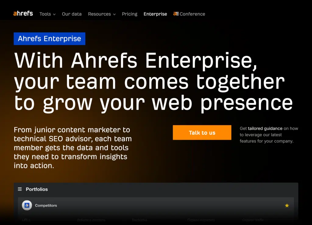 Ahrefs’ enterprise option is essentially a beefed up version of the core offerings. So, while useful for many businesses, some large enterprises will likely outgrow the tool’s capabilities fairly quickly.