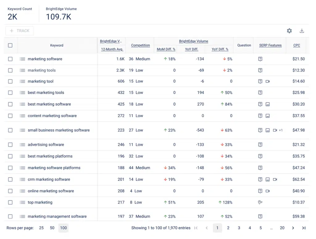 BrightEdge is an AI-powered enterprise SEO software that can handle large-scale SEO operations.