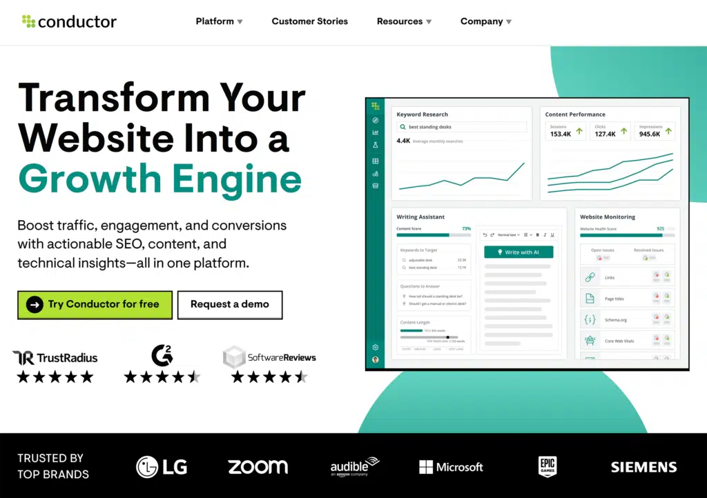 - Conductor Intelligence: For comprehensive SEO, including content creation and optimization tools
