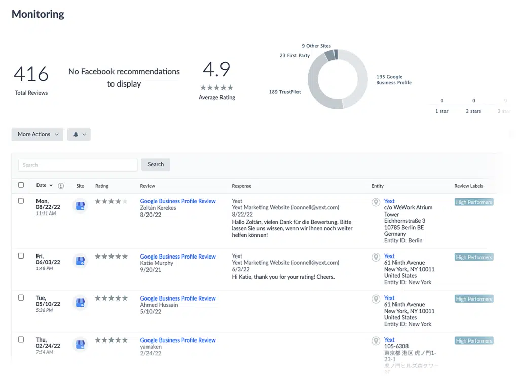 Then, with Yext Reviews, you could monitor and respond to patient feedback across all these locations from a single dashboard.