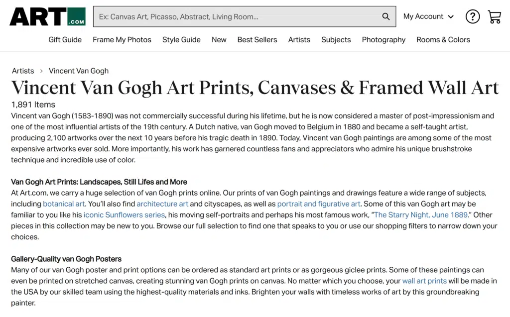 For example, if you rank number 1 for “Van Gogh reproduction prints,” it’s important your content is fresh and updated. Schedule regular reviews and refreshes as needed to maintain your spot.
