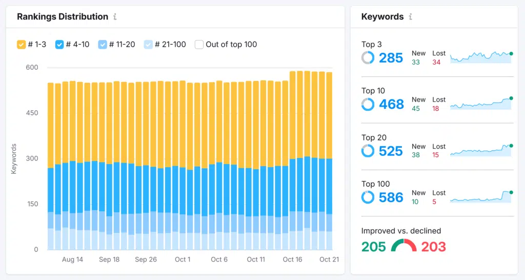 Use a tool like Semrush’s Position Tracking to track your rivals’ position changes. (You can also use this tool to track your site’s rankings.)