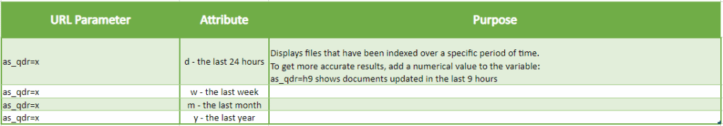 Google Search Parameters Cheat Sheet