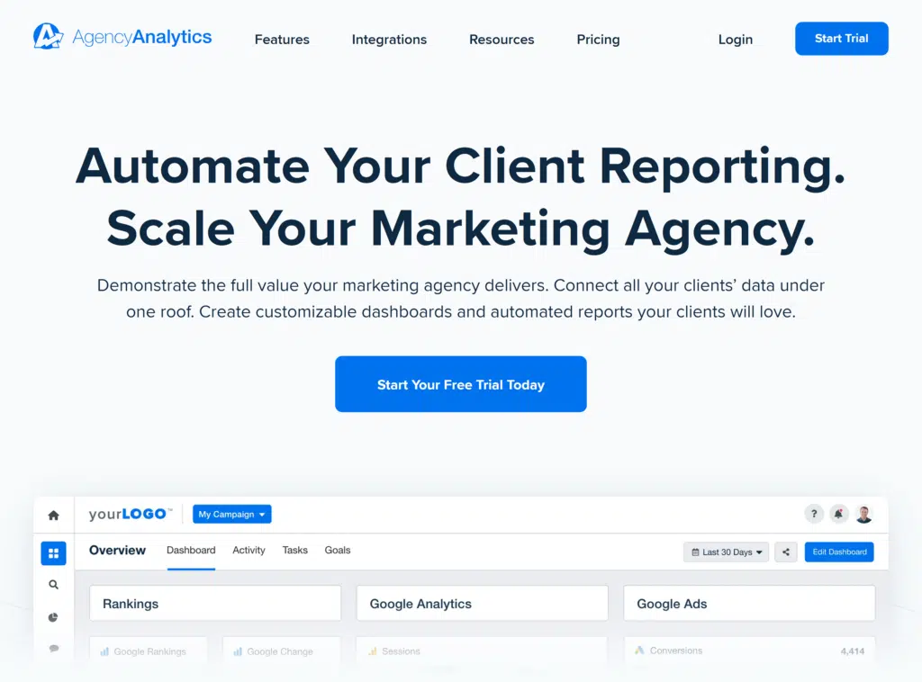 AgencyAnalytics is a robust marketing analytics platform with a unified dashboard for tracking SEO, PPC, social media, and other marketing efforts.