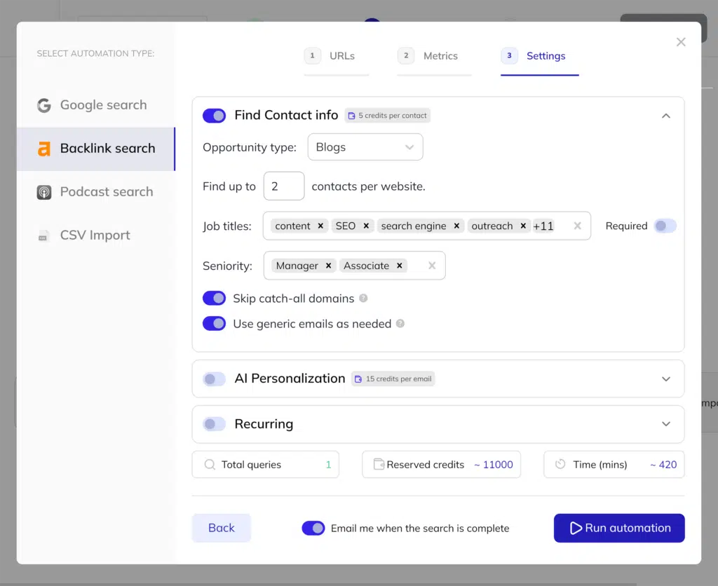 - Workflow automation for repetitive linking tasks like finding broken backlinks and building new ones. This saves significant manual labor.