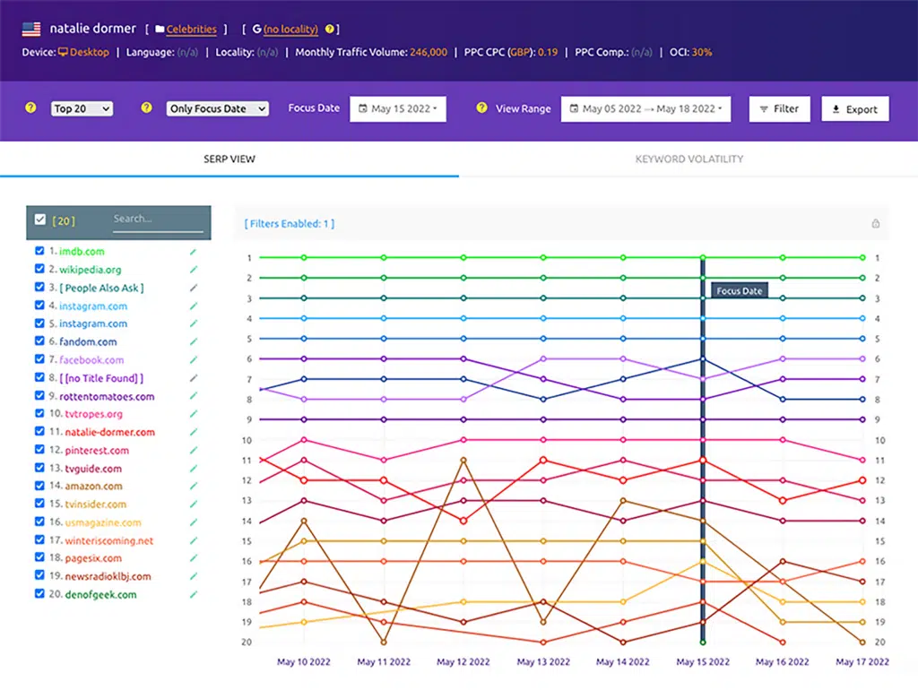 This information helps you analyze why rankings change over time, and provides insights you can use to create a more effective SEO strategy.