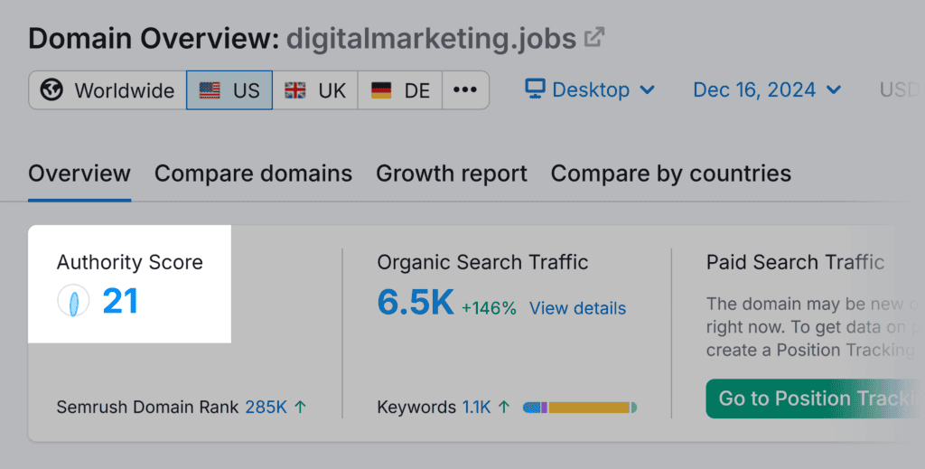 - Page Authority Score: Indicates the authority of the pages ranking for your target keyword
