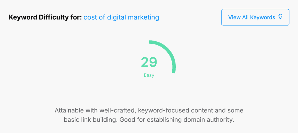 When it comes to reviewing different types of data and analytics software, it’s less a matter of finding the best keyword difficulty tool, and more a case of picking one and using it to make smart decisions about which keywords to realistically go after.