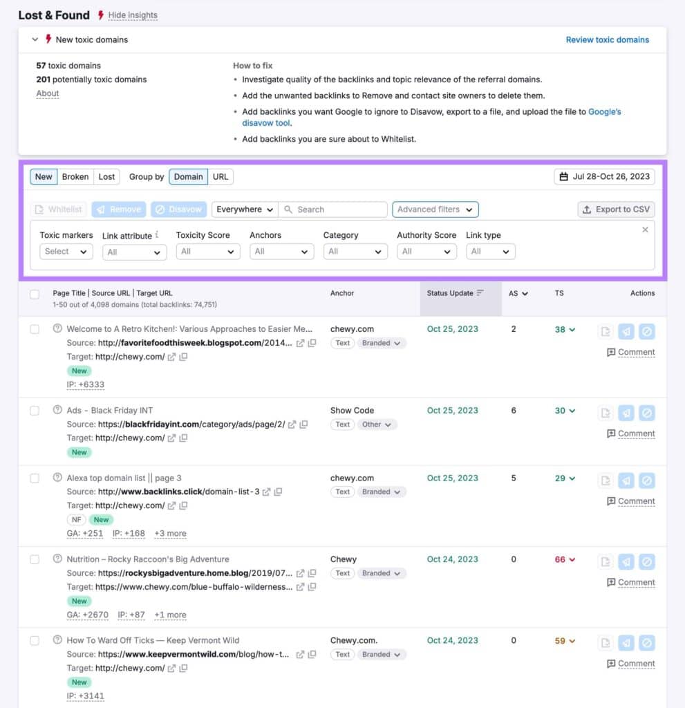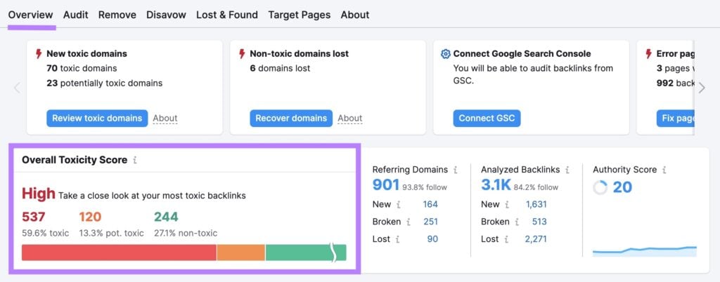 This helps you stay on top of potentially toxic links that could be harming your site’s performance in search results.