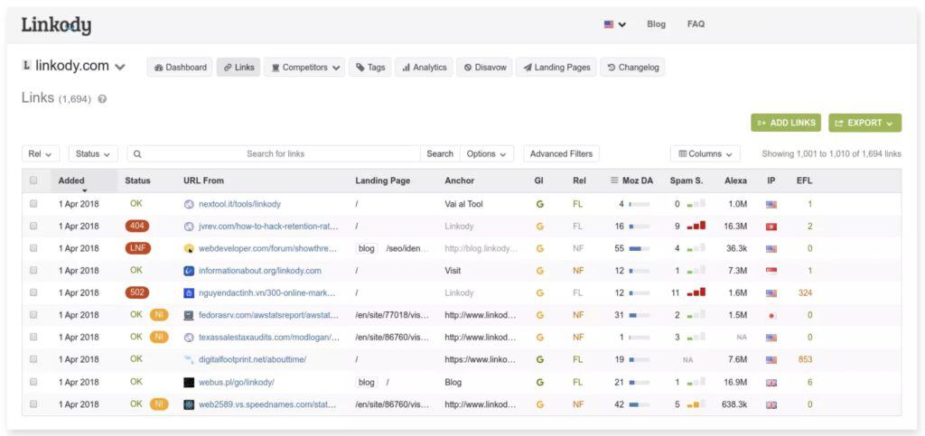 Linkody is a backlink monitoring tool that lets you track and monitor your own site’s link profile. Along with your competitors’ domains.