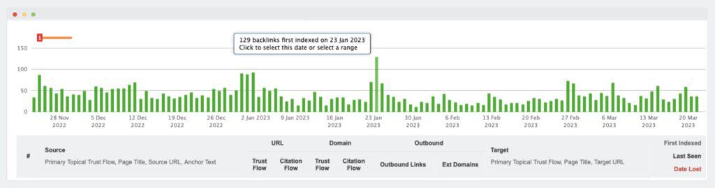 The tool can help you get a better understanding of each backlink’s effect on your link profile through proprietary metrics such as Trust Flow. This calculates how trustworthy a page or domain is based on the quality of links that point to it.