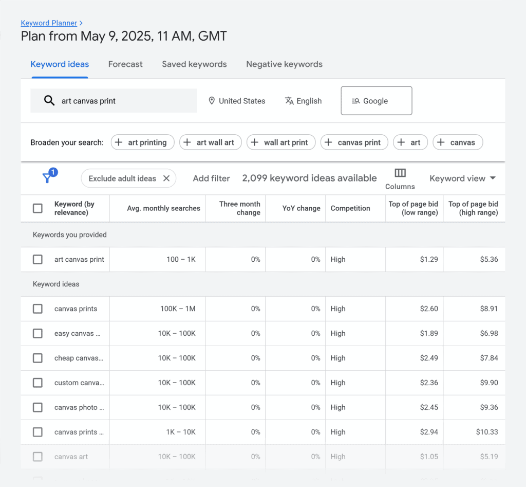 Just note that the data is tailored for PPC. It’s not ideal for SEO-focused keyword research, as it lacks metrics such as keyword difficulty and SERP features.