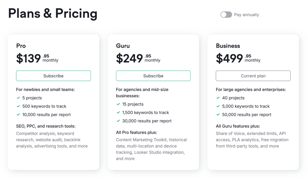 If you want to conduct extensive keyword research, the Agency plan offers 5,000 daily searches and costs $499 per month.