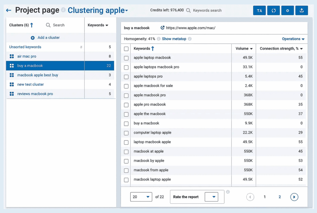 In just a few clicks, you’ll see which keywords to target together for better on-page optimization.