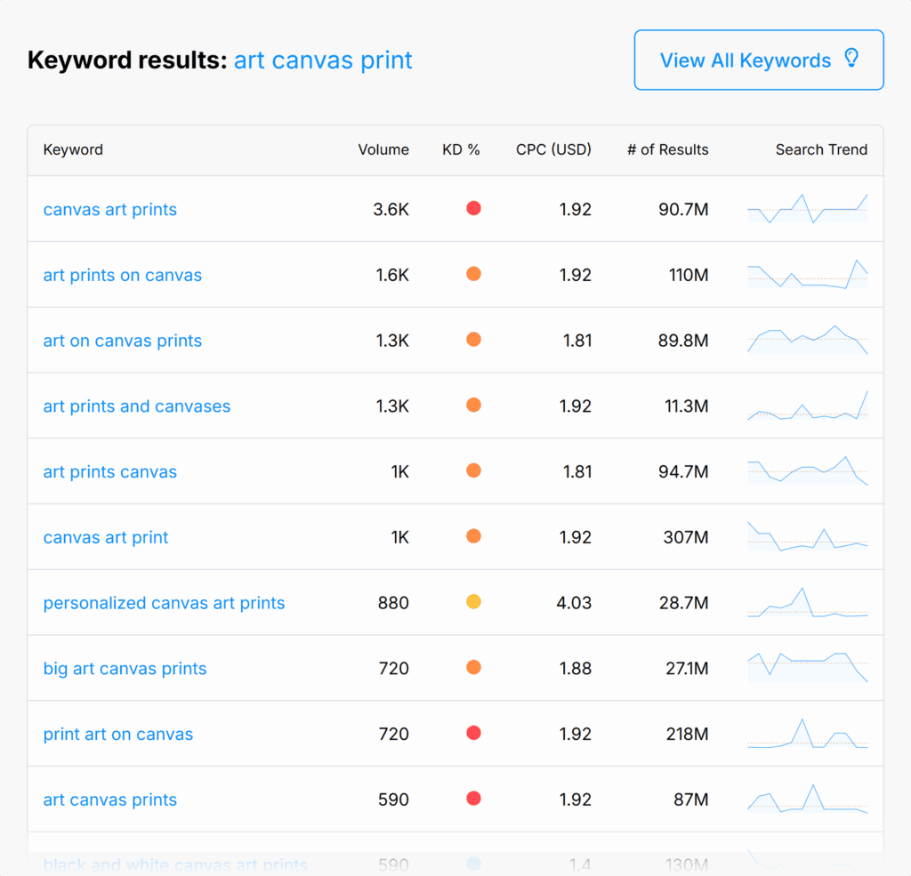The data is more limited than what you’ll find in tools like Semrush or Ahrefs, but it’s still useful for getting a quick snapshot of keyword potential.