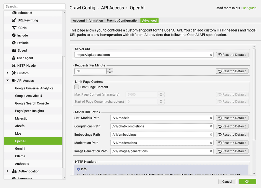 Screaming Frog costs $279/year for the full version, which includes no crawl limits and access to all AI features. A free version is available, but is limited to 500 URLs per crawl. It also does not include AI features or advanced configuration options.